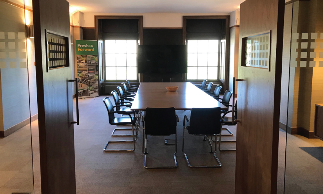 • A spacious boardroom with an adjoining breakout area overlooking Blythswood Square gardens